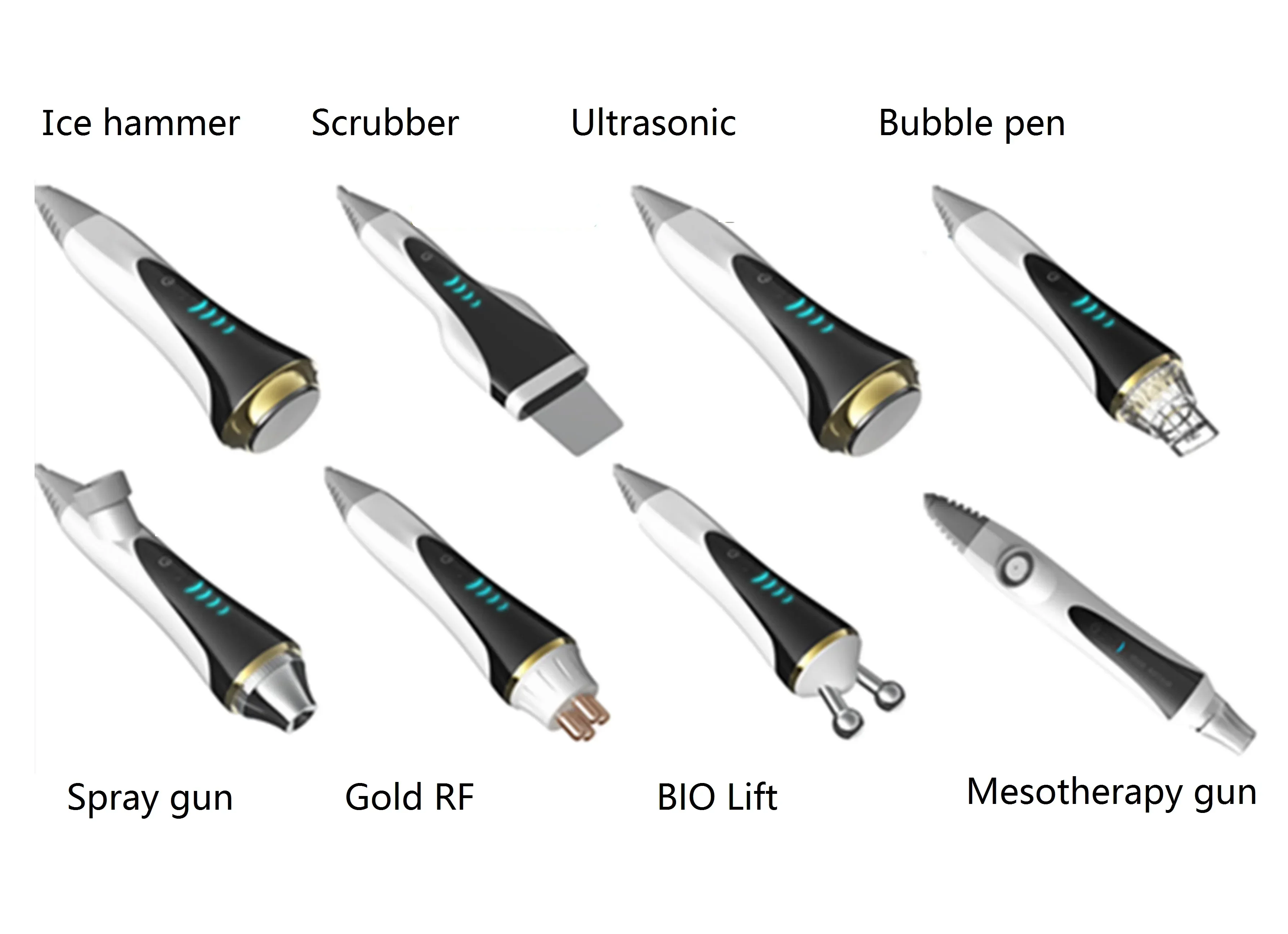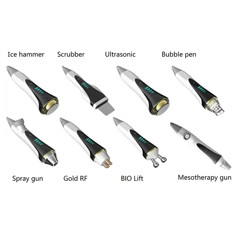 Smart Ice Blue II Skin Management System has eight high-profile beauty functions, combined with "Ultrasonic scrubber ", "Hydra dermabrasion bubble pen", "Ion spray pen", "Utrasonic", "Gold RF", "Cooling hammer", "Micro Electric Handle", "No Needle mesotherapy " and other technologies to comprehensively manage the skin