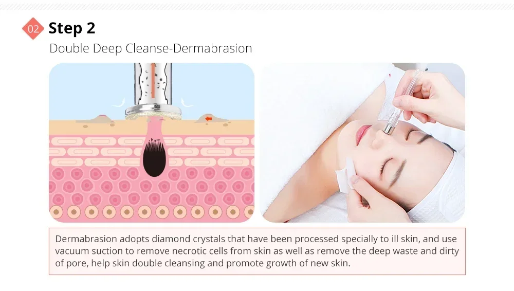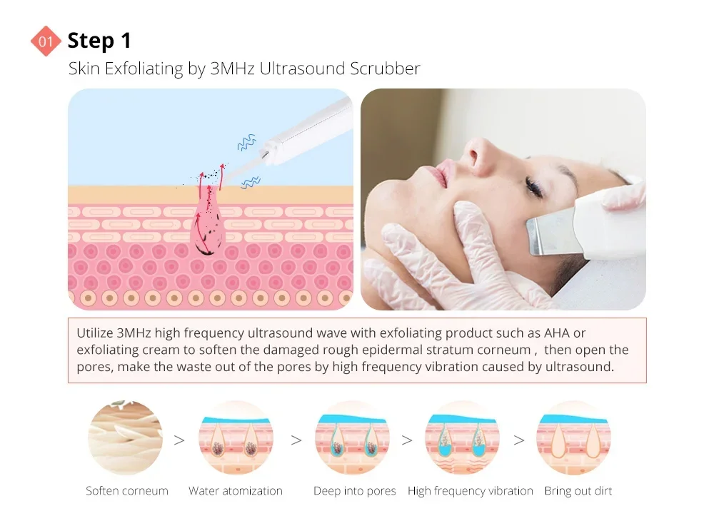 Slow metabolism of skin, coupled with the influence of ultraviolet (uv) cause melanin precipitation and the formation of dark spots, freckles. By ultrasonic oscillation, penetrate into deep inside the wool stoma, can deep clean your skin dirt, senescent cells and corneous layer; Can effectively remove acne, blackhead acne. Accelerate blood circulation, promote metabolism, fade spots.
