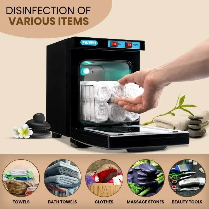 West Ivory 5L Mini 2 in 1 Hot Towel Warmer and UV Cabinet - Aluminum Interior - Heater Equipment for Facial Spa Salon Esthetician Barber Beauty Massage Home Use – Black