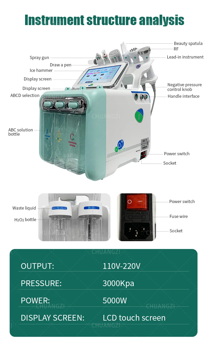 7-in-1 Hydra Skincare Beauty Machine H2o2 Small Bubble Exfoliation Cleansing Facial Care Machine