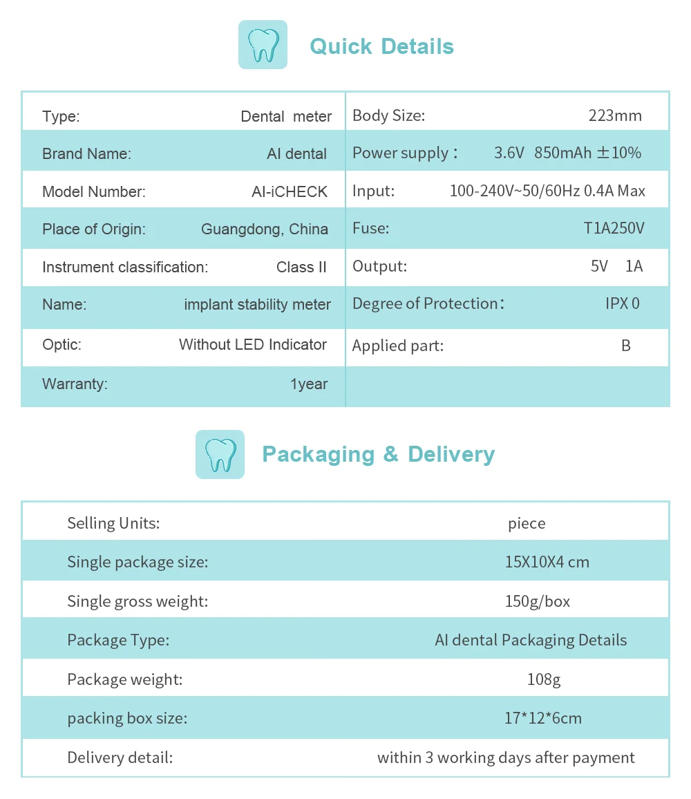 AI-ICHECK Dental Implant Stability Meter IST Test Measuring Device 0°~30° Upward Smart Tapping Strength 1.0N To 1.3N