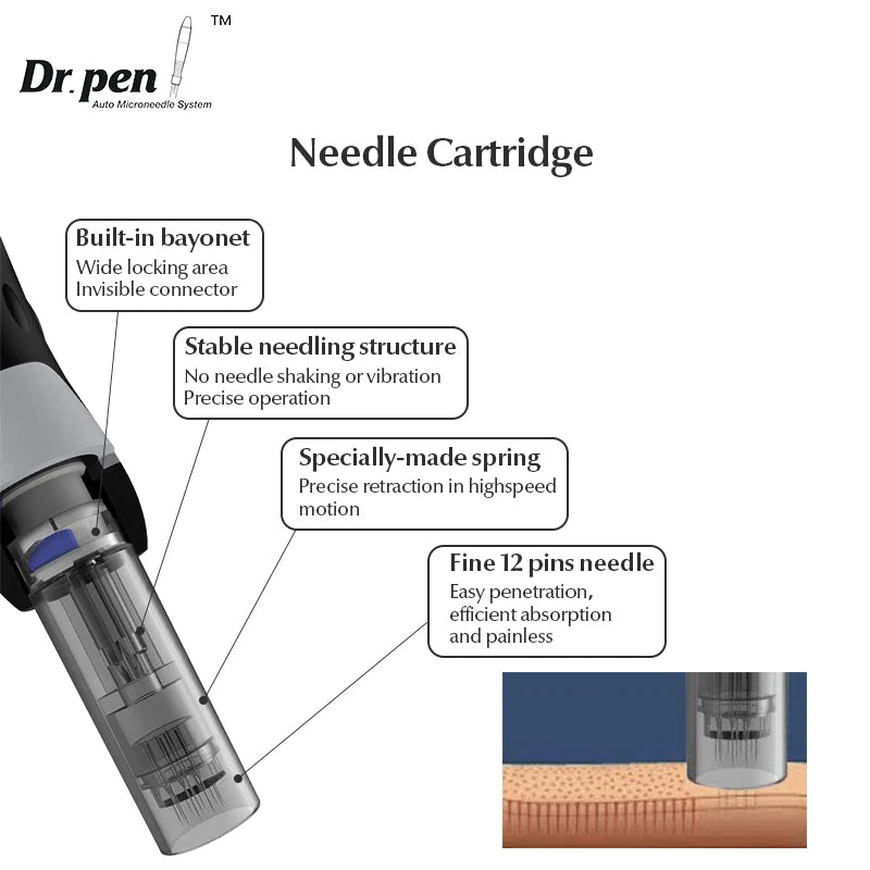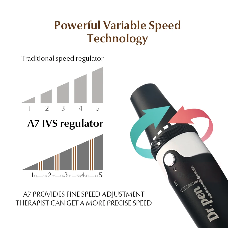 A: The Dr. Pen vibrates up & down and can be set from low to high to increase microchannels per minute.