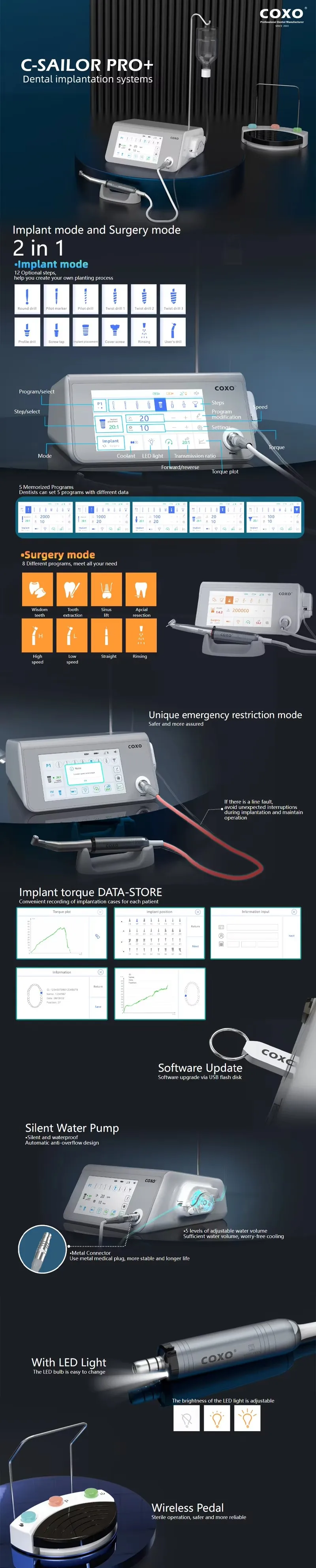 Dental Implant Motor Brushless Surgical Implant System Touch Screen with 20:1 and 1:4.2 Fiber Optic Contra Angle Dentist tools