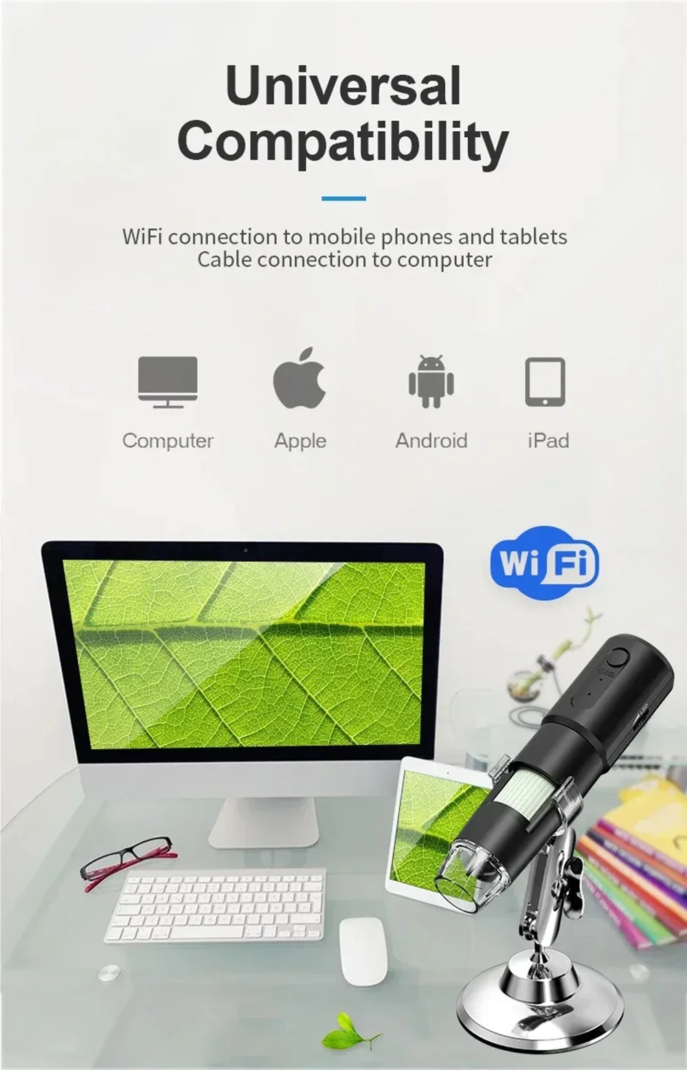 4. Built-in 550mAh lithium battery, the microscope will be charged full in about 2 hours and able to continuously work for about 1hour.