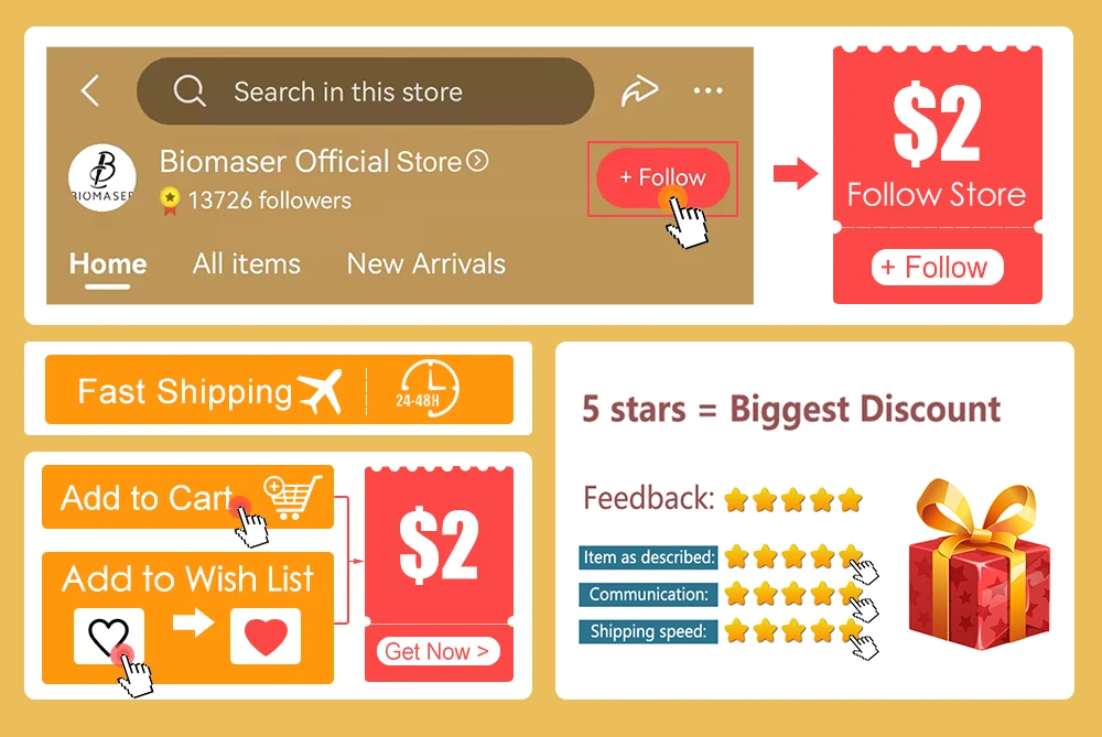 Biomaser could provide Wholesale and drop shipping at customers choice, OEM service and customization are also possible upon request.