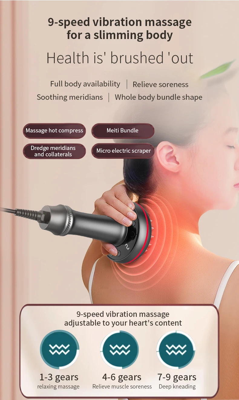 Electric Meridian Brush Gua Sha Body Massager Vibrate Microcurrent Hot Compress Scraping Lymphatic Drainage Machine Fat Burner