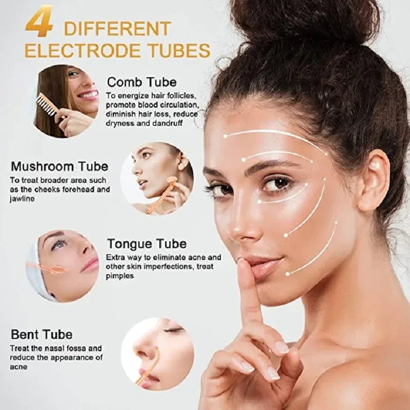 High Frequency Electrode Wand With 4 PCS Neon Electrotherapy Glass Tube Acne Spot Facial Skin Care Spa Violet Ray Wand Face Lift