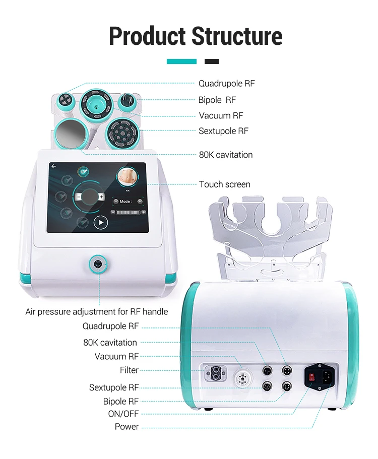 2.Vacuum RF: penetrates deep skin, generating heat to accelerate metabolism, collagen contraction and regeneration, activate adipose tissue.