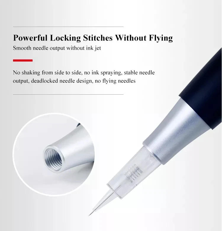 Each permanent makeup pen is CNC processed from aircraft aluminum alloy and then anodized. The motor is 10w made in Switzerland, with low noise, stable and reliable work, and will not heat up for a long time.