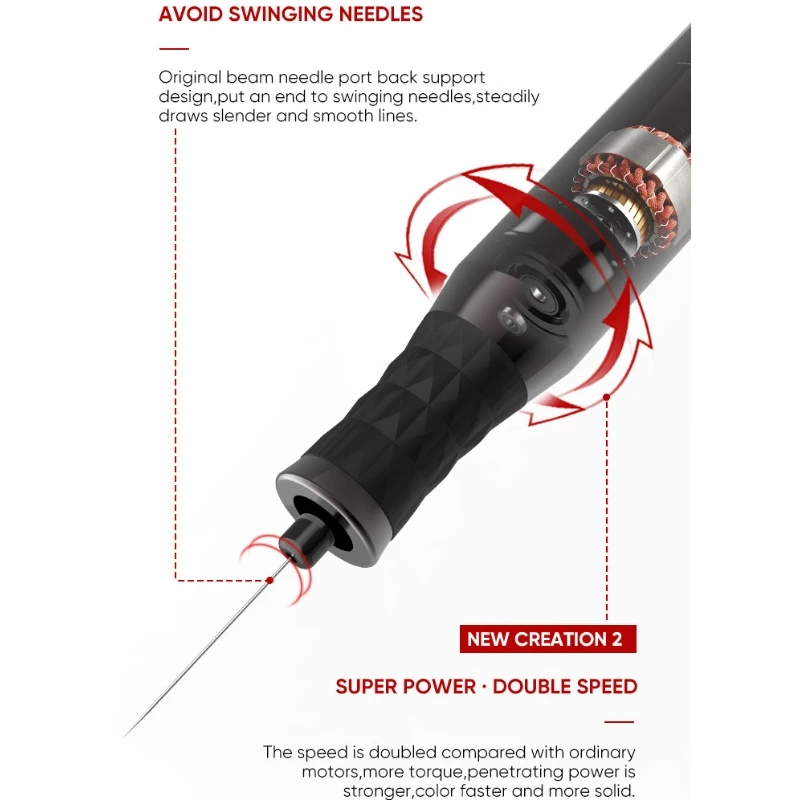 Lightweight body, reducing power loss, exquisite sound control and noise reduction, continuous needle dispensing without overheating, embedded with curved silicone technology, bringing a comfortable and smooth new experience.