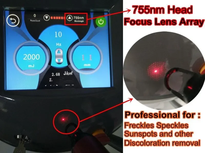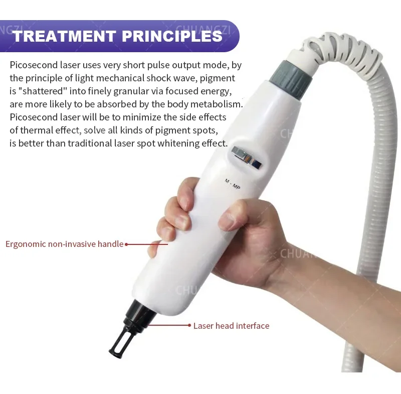 1.High-Tech—Picosecond laser machine used unique Honeycomb Focused technology to form a skin effect vacuolization,which can protect skin from damage during treatment.