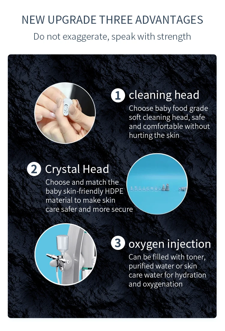 [IMPROVE SKIN COLOR] : Remove skin cutin, imperfections, blemishes, wrinkles and unwanted pigmentation on the skin, Cool massage head helps to shrink pores,brighten skin color.