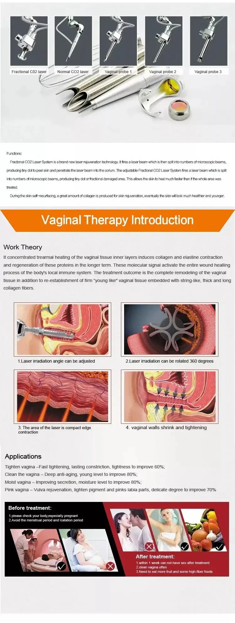 YCO2 CO2 Fractional Laser Treatment Machine Vaginal Tightening Facial Peeling Wrinkle Removal Beautifying Device